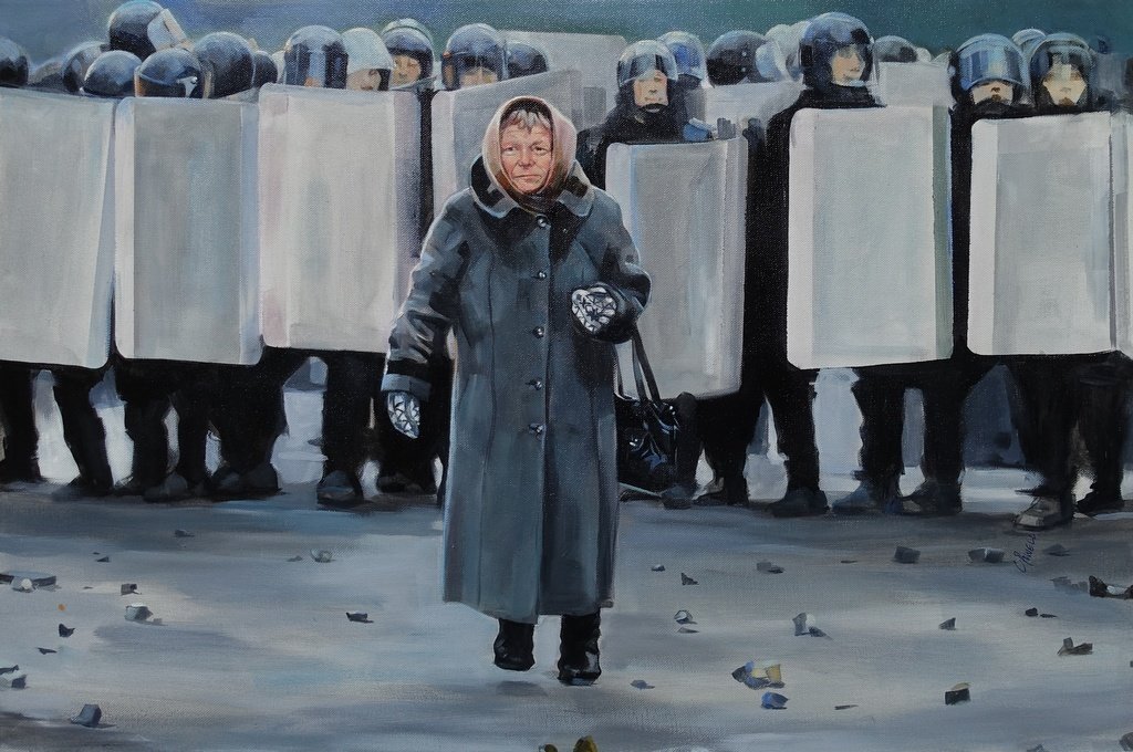 The revolutionary paintings in Unrest are urban by nature, depict scenes of civil unrest, social snags that beset city life, riots, and an affiliation for haunting gasmask images. Orwellian dark portrayals of masked faces rings likeness to David Lloyd’s drawings for V For Vendetta, the mask of which has become synonymous with revolution, used by the hacktivist group Anonymous.