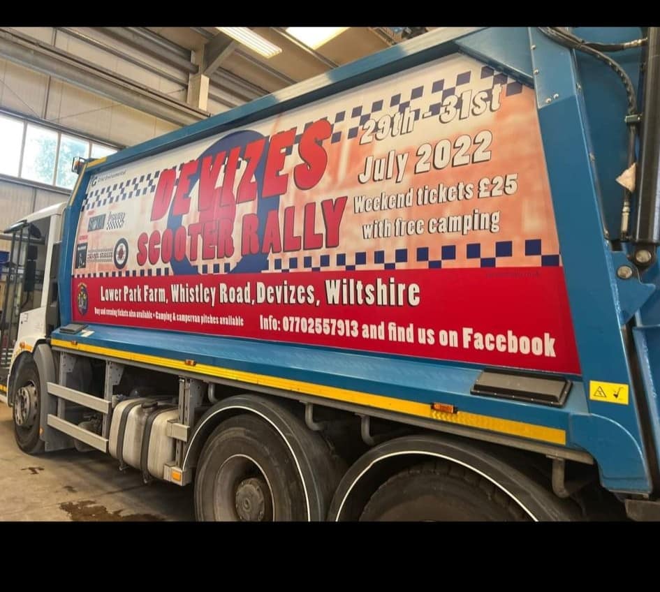 To make doubly sure you don’t miss the news Devizes Scooter Rally is returning at the end of July, The Scooter Club team put up noticeboards on the edges of town, and even plastered their poster on side of refuse lorries; a mightily impressive bolt of marketing, I must say, but also, being scooter aficionados from afar won’t see them, it surely is a testament to the club’s wishes to welcome locals from outside of the niche market.