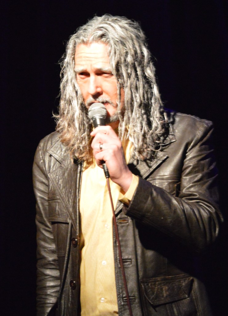 After the interval, and before the main act took the stage, we were treated to….a film! A short docu-style item, featuring many celebrities, setting up the myth of the band doing their first gigs for 53 years! (If you go onto their website you can read all the spoof material for yourself). The joke/ conceit was maintained throughout the evening with further bits of film, and Adam himself pretending to be an 84-year old (he’s actually 48, just be clear).