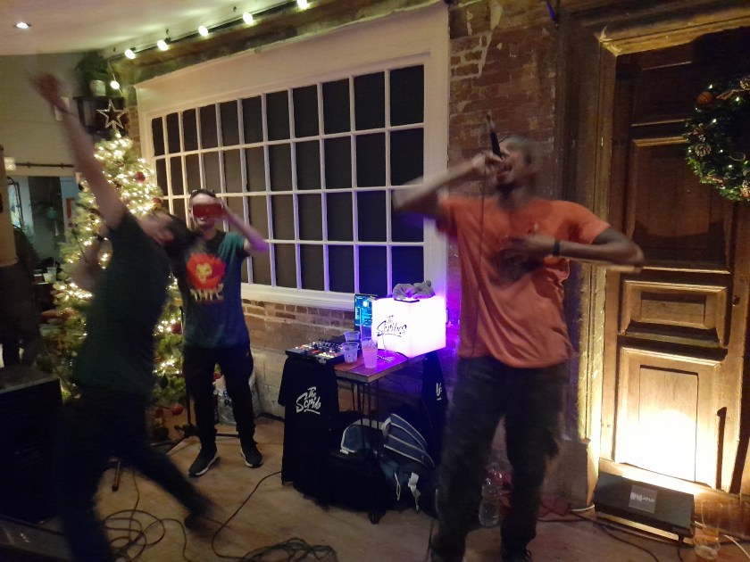 Another fantabulous evening at Devizes’ tropical holiday resort, The Muck and Dunder rum bar, where Bristol’s boom bap trio I’ve been hailing since day dot, The Scribes, came, saw, matchlessly interacted with the audience, and tore the place down with a riotous show of incredible skill and talent; secretly, it was foreseeable months ago……