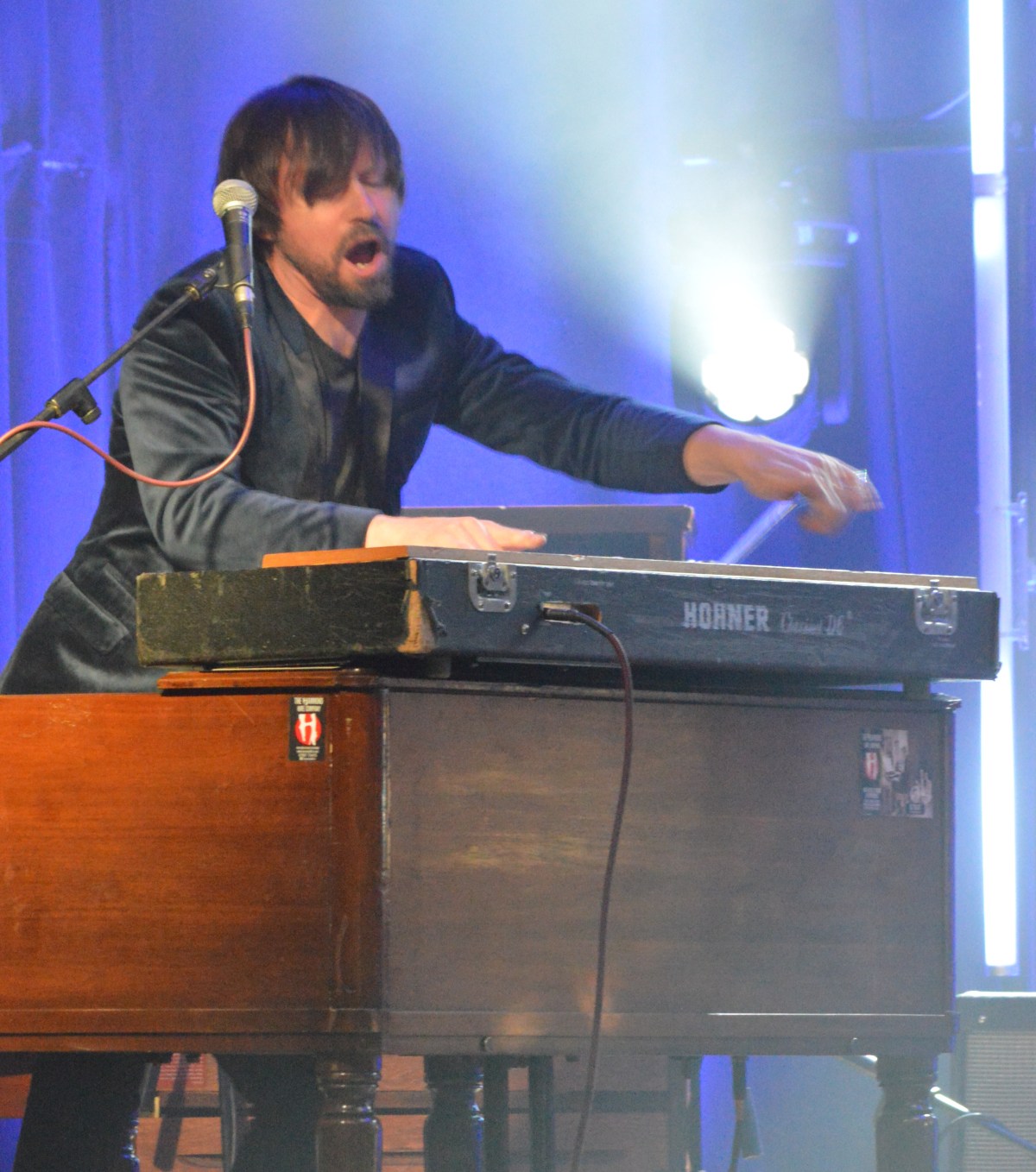 ((Just for the technically-minded, he was playing a 1971 UK spec B3 Hammond with two 122 Leslies, and a vintage Hohner D6 Whammy Clavinet. The Clavinet is an electrically amplified clavichord invented in the 1960s, which produces sounds by a rubber pad striking a point on a tensioned string, and designed to resemble the Renaissance-era clavichord. The clavinet was pushed through a Fender Hot Rod Deluxe amp.)) And for the less technically-minded (like me), the upshot of all this clever stuff was a set-up that enabled him to play the keyboard as if it were a guitar. And it was quite something to both watch and to listen to. As an early demonstration of just what it could do, the band’s version of Hendrix’s Voodoo Chile a couple of numbers in nearly brought the house down.
