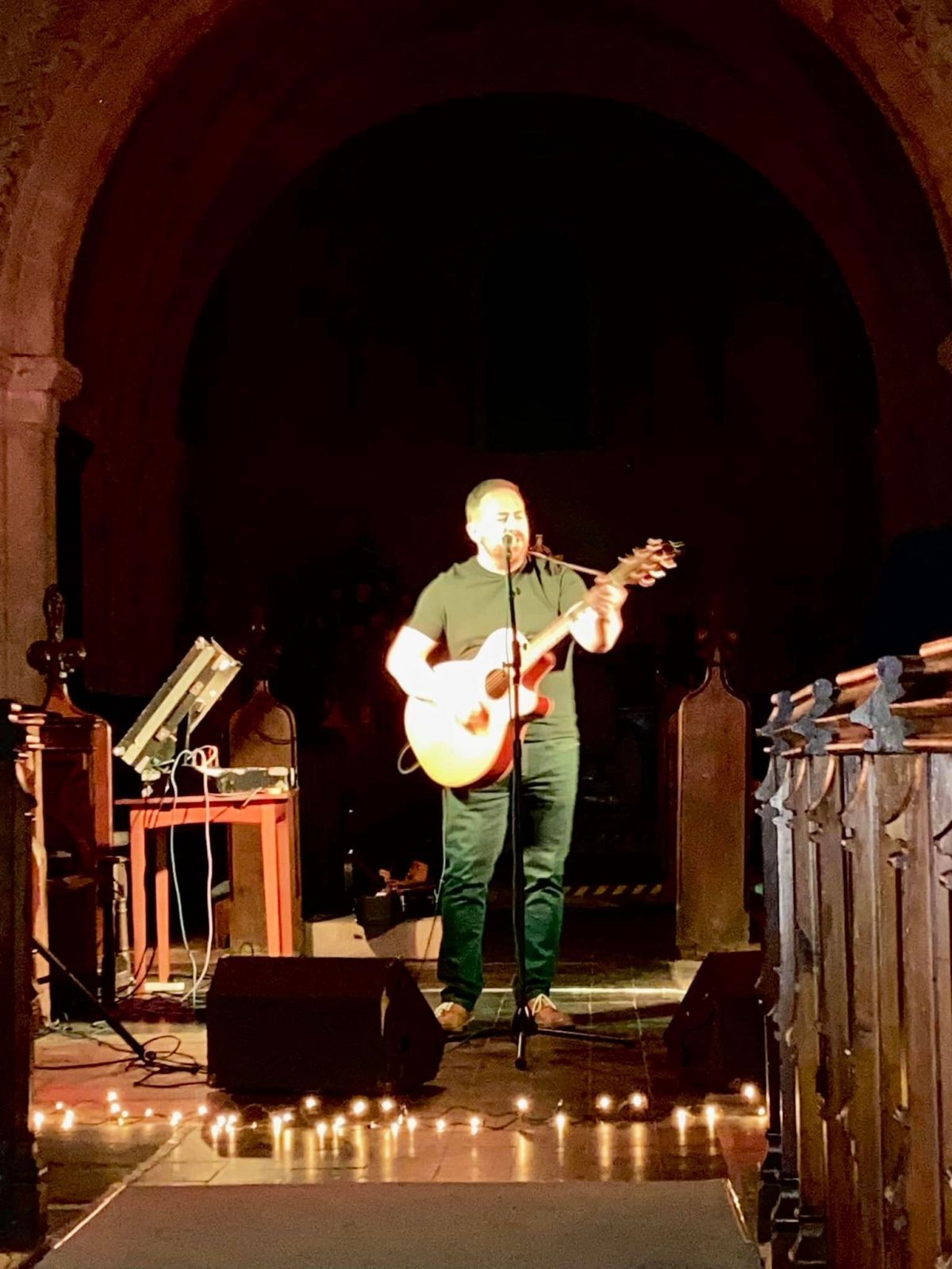 A little more unholy wine later and Neil of Brave New Broken Hearts Club (I so want to write ‘Band’ at the end of that!) took the space of Pearl and the vicar’s usual spot. The church was growing colder in the February night but Neil’s warmth, his fun and gentle manner and his evident kindness filled the atmosphere. His conversational chat between songs bought smiles to all of us watching and gave an insight into this seemingly self-deprecating but obviously deep thinking and amusing guy. I bet he’s a great crack to sit and have a drink with. Anyway, on to the music….