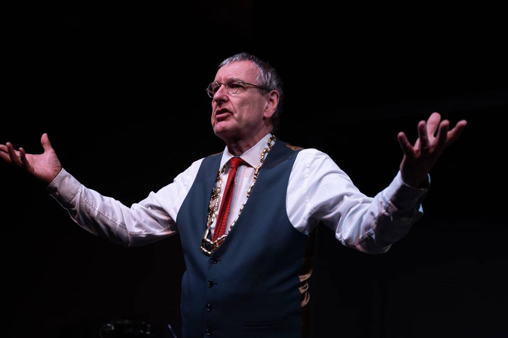 Notwithstanding these difficulties, Liz Sharman’s production made light of such concerns, and a competent and well-drilled cast delivered an excellent opening night performance to a near-full theatre. The themes of corrupt power, of vice vying with virtue, of hypocrisy and double dealing remain as a relevant commentary on the political events of today, to say nothing of the resonance of the #MeToo movement. In this case, of course, The Bard of Avon ensures that all is wrapped up well at the end, where deception is uncovered, virtue is rewarded and the criminals are punished. If only that happened so neatly in real life.