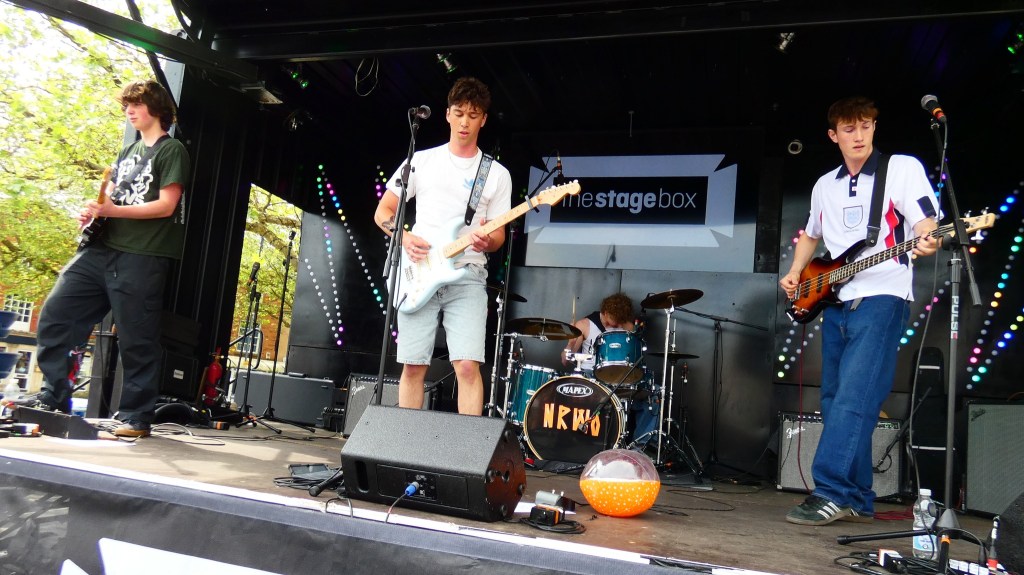 The proof was in pudding; see the featured photographic evidence. With a fanbase predominantly teenage and unable to attend pubs so easily, the age demographic was so varied, the crowd had amassed to near full capacity. The fanbase stood at the front, the more curious further back, but just to wander through the crowds and see the same look of awe and admiration for a young local band on the pinnacle of greatness, was mind-blowingly epic. Nothing Rhymes With Orange smashed it out of the park, that being the Market Place, and to every surrounding village with an absolutely sublime performance to lodge a firm place in the history of Devizes Street Festival.