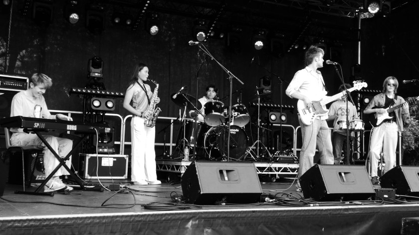 A second student at the keyboard, Beth Jones, with equally accomplished vocals blessed the festival with some beautifully spun covers, and while they found time for a second tune from wonderful Paul Simon-esque acoustic guitarist Tom Schusster, who previously had first billing at the festival, nestled between those two we had a surprisingly funky collective known as Jvno.