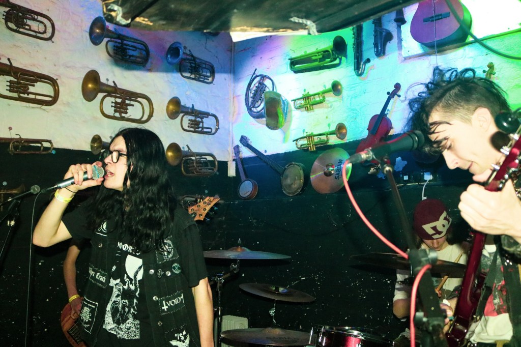 With three admirably well executed Bikini Kill songs – Carnival, Feels Blind and Star Bellied Boy, they enticed the audience so much, we were demanding “one more song”. And wow, they performed Deception by le Tigre, which truly exploded the mosh pit, not that we had stopped dancing since Steatopygous had entered the stage. I just want to say an incredibly well done to Eliza, Poppy and Ewan, as during their set, they had to stop for a tech issue, but carried on, dare I say, better than before. As a performer myself, I can understand how gut wrenchingly scary it can be to play on stage, let alone have to stop and start again, and they dealt with it like the pros they are becoming. I have been told they are working towards an EP and I, like many others, am beyond excited to hear how it comes out. So, like SHOX, if your ears haven’t been blessed by the music of these beautiful people, then I would really take your opportunity.