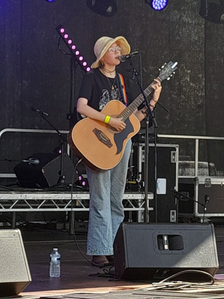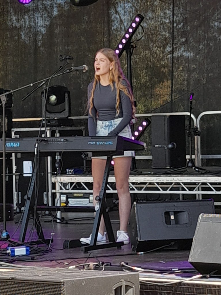 I’m standing with Chippenham’s wonderful folk singer-songwriter Meg, complimenting Mills for a likeness to her own expressive vocal range. Meg’s on next, which shouldn’t really be as the section is supposed to showcase talent from the town’s comprehensive, but as one band cancelled I was called for a suggestion and couldn’t imagine anyone more apt and deserved. At 17 now Meg has developed a name for herself, hard working her idiosyncratic style to play Chippenham’s Pride, Folk Festival and expanding to Minety and Trowbridge’s Pump. On her first of three gigs this weekend, she excitedly tells me how it went supporting Jools Holland. Such are local circuit barriers though, Meg’s not so widely known here, so even a short set is good to help her to venture eastwards, and they sure made her welcome.