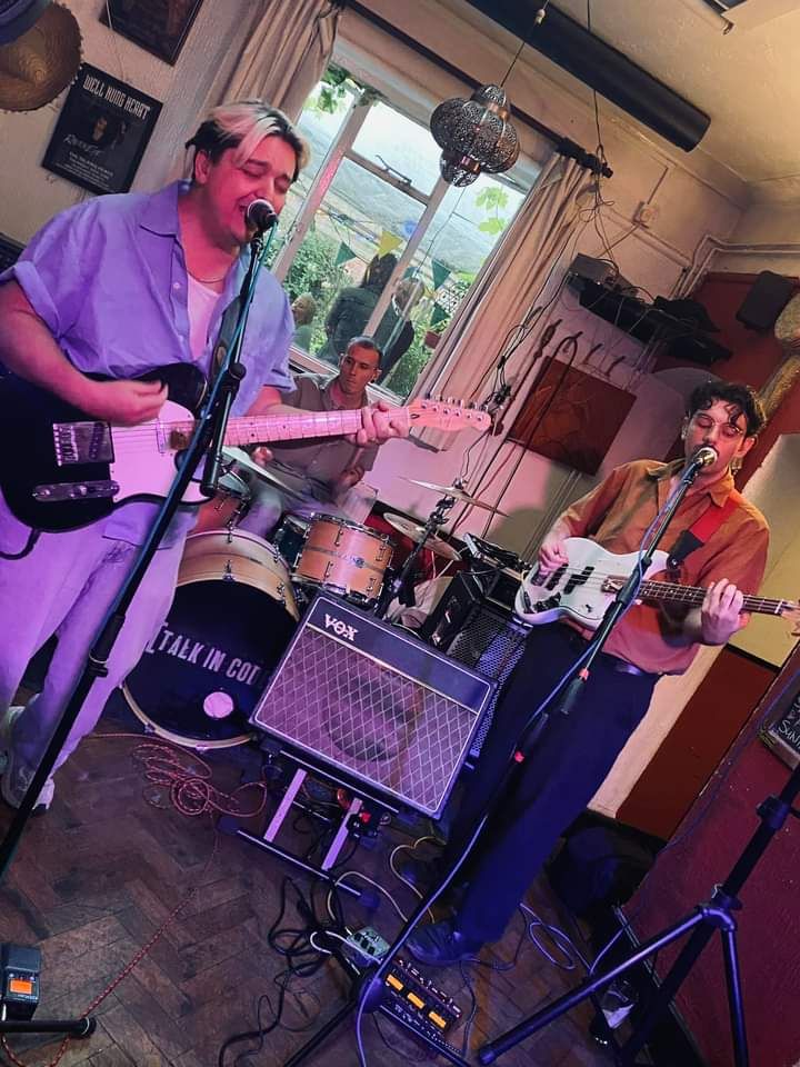 And the sum of it all did produce another memorable gig at the trusty Southgate. Kicked off with an impressive support set by Bristol indie-rock trio Laissez Faire, a new one to me who could’ve easily taken a headline slot, and regularly does elsewhere. With a harder rock edge than Talk in Code, they had an acute sense of balance in bringing frenzied bridges and even-paced melodies. Their original compositions taking a hint of grunge, were confidently delivered and adroit, with attention to wider appeal than simply thrashing something out, I detected equally proportioned nods to the punker side of eighties mod rock as well, which is always a win for me.