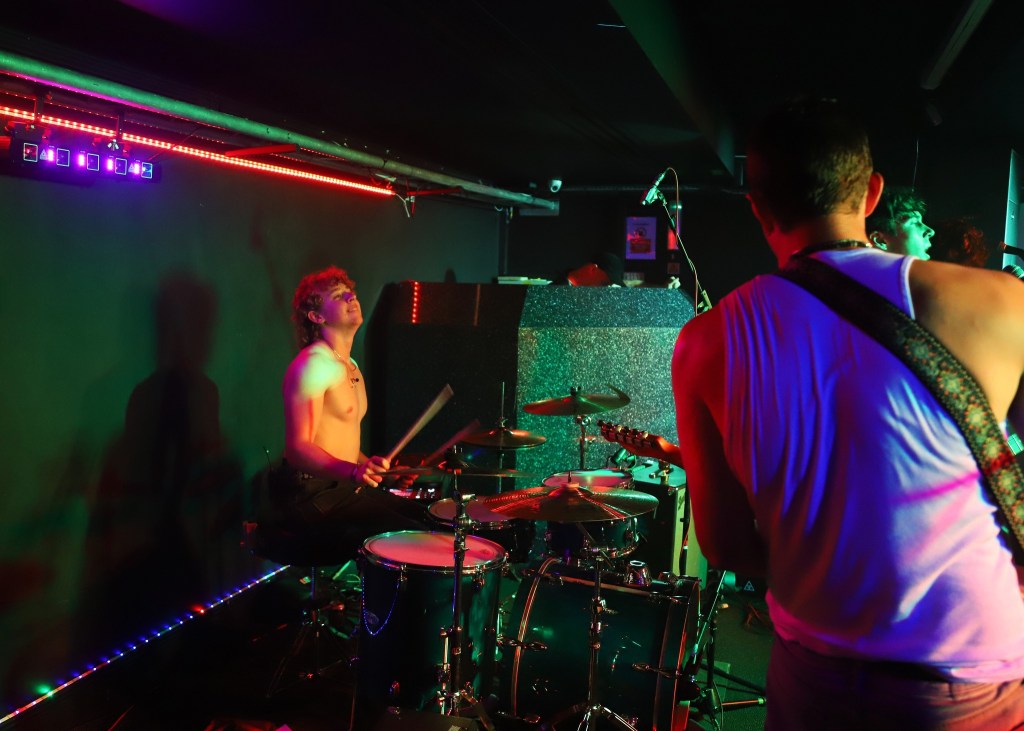 Sam brought it to present day, “if you’d have asked us at the start, like five years ago, if you’d all be living in the same flat together….” Which bought a round of laughs, I believe Lui bantered about Sam. “I would have been like, what are you talking about?!” Sam completed. Youngest in the band, Fin, reminisced, “me and Sam used to play in a band together, when I was in year 7 and he was in year 9,” then added “narcolepsy!” I’m uncertain if that’s the name of the band, or if he suffers sleep disorder!