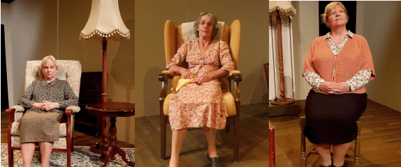 All three monologues are set in similar rooms… somewhere between 1950 and 1970 in décor though as we possibly notice ourselves with older relatives – or even ourselves! – that may still be the same thirty years later of course. The Wharf’s own tech crew as ever created the sets – it’s been many a year since I’ve seen so many antimacassars. Gill Barnes and her wardrobe team as ever hit the spot with clothing befitting women of a certain age and the actors portray that well.