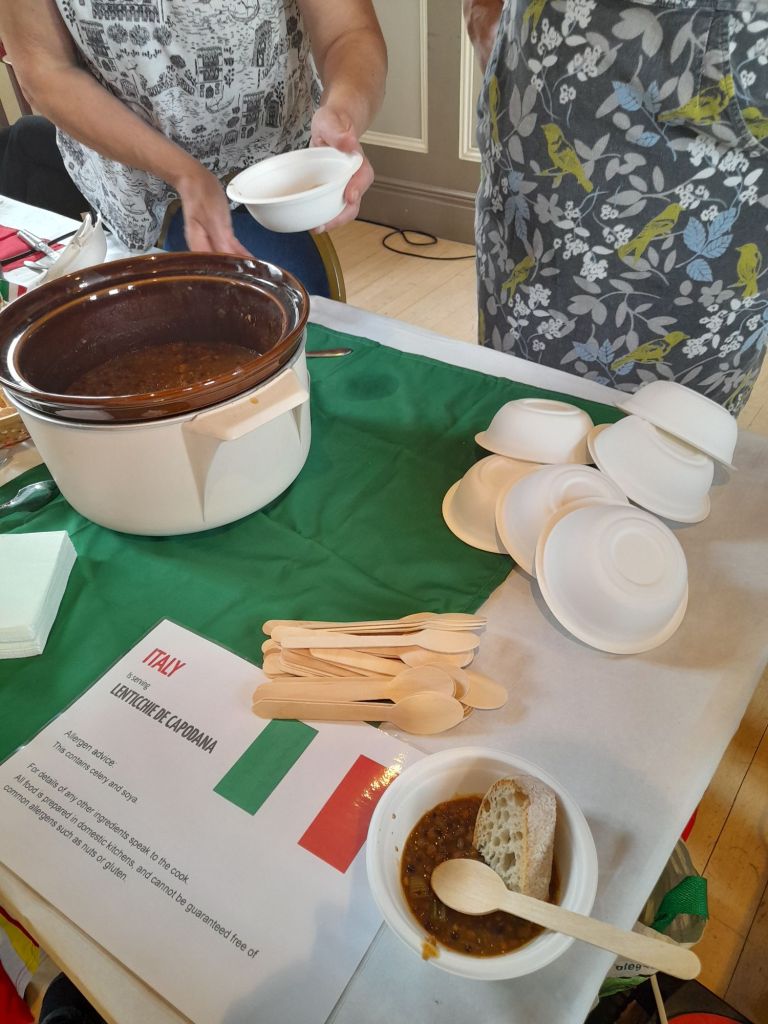 It’s an annual finale I’ve missed in previous years, but was persuaded to attend by Dora who was there with a sweet Hong Kong dish of tapioca and melon. And that’s the premise, any local with ethnic roots is invited to serve a taster dish from their country of origin. One raffle ticket equals one dish, a strip of five costs just £3, the event is free to attend.