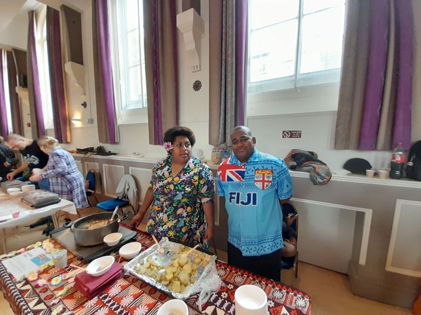 There were a few tables I did not try, such as Scottish haggis, I didn’t so in favour of the more exotic ones, and prevention from over-indulging (of which I was close to the border already.) I mean, when do you get to try Rourou patties with Dalo from Fiji, in Devizes, huh?! This one was particularly unusual, and tasty, as equally as those from the Ukraine, a berry and cream pudding from Denmark, even some apple layered sponge cake from Guernsey; yes, they had puddings too, get in!