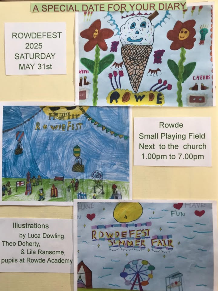 Okay, I can’t keep the secret any longer or I’ll pop! While all the hard work is being organised by a lovely committee, because they showered me with biscuits I’ve been doing the easy bits of arranging some live music and designing a poster for Rowde Fest 2025…..
