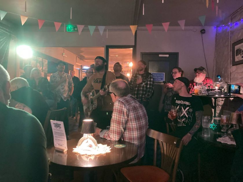 On tour with some friends on a multi head bill, having fun whilst often singing and talking of life’s serious side, all of them; relationships, drinking games and mental health, all up for dissection and deliberation through song.
