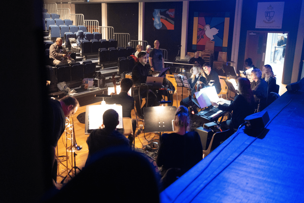 That of course leaves the thirteen strong orchestra led by Musical Director Samuel Warner performing the crazy Sondheim music with strong and emphatic delivery.