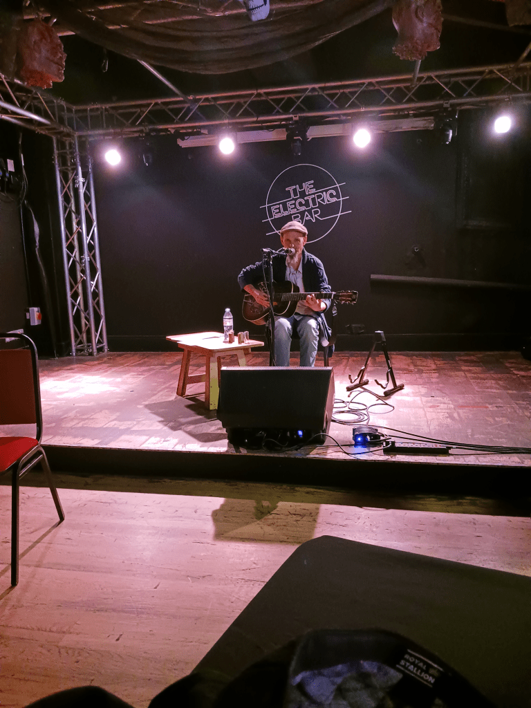 But in case this sounds like Mark is just a Jack Dee wannabe, it should be emphasised we were here for his music and he was there to deliver it – with style and panache and not without a bit… well a lot… of dry humour. A cover or two, but predominantly – naturally – his own stuff… haunting, engaging, even breath-taking.