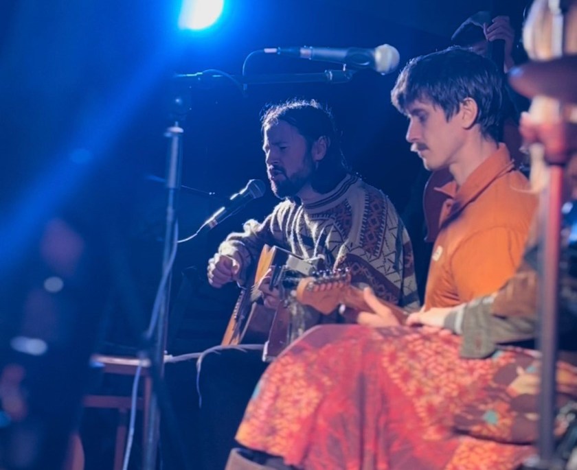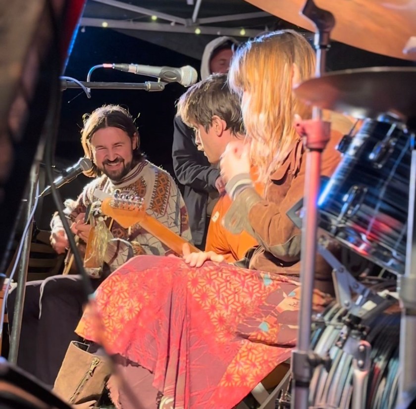 The atmosphere was intimate – maybe fewer than 100 in attendance – but one that felt lively and far from empty. Friends of friends of friends made happy introductions and chats to one another, waiting for the music to start. Two support acts opened the day. First, a solo and entrancing guitar performance from Grace Elizabeth Harvey, followed by a sort of double act from Ann Liu Cannon and Esmé White, the two swapping between lead vocal spots all the while backed by a mandolin player – the first of many off-kilter instruments to litter the performances.