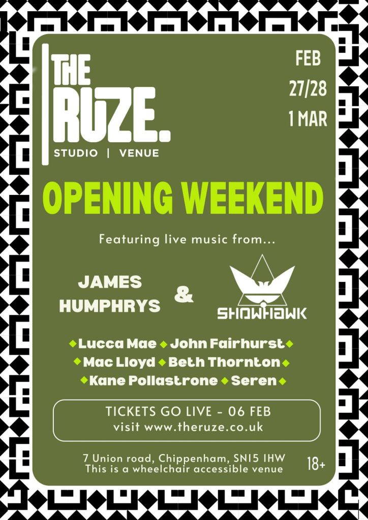 James Humphrys, Mac Lloyd, and Beth Thornton kick off the proceedings on Friday night, while Saturday the 27th sees The Showhawk Duo perform their unique take on club classics, acoustically.