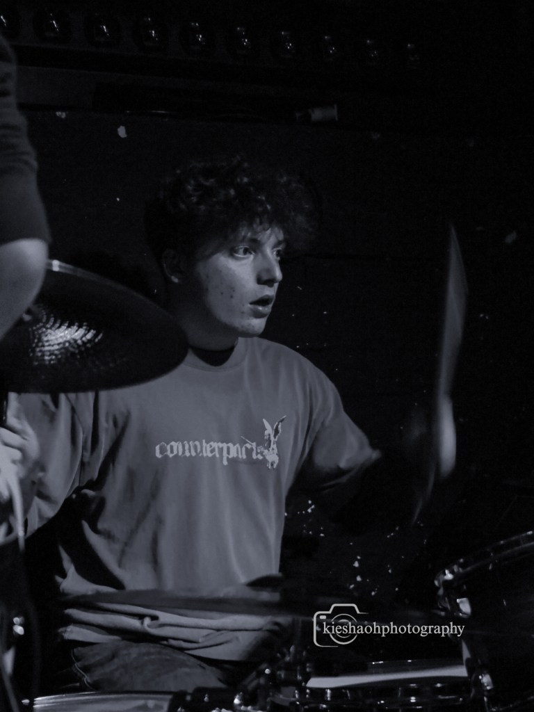 Okay, it’s labelled a “student night,” organised by small Trowbridge label Nova Sounds Records; I’m young at heart and Gen Z don’t age discriminate. They’re there to party, support local acts they adore, none too fussed if a codger hides in the background. Bands invigoratingly fresh and hopeful, supplying a new scene with zest, but also a timeless punk lore of affordable and friendly gigs, which makes The Pump function successfully, bucking a tragic proneness era of grassroots venue closures.