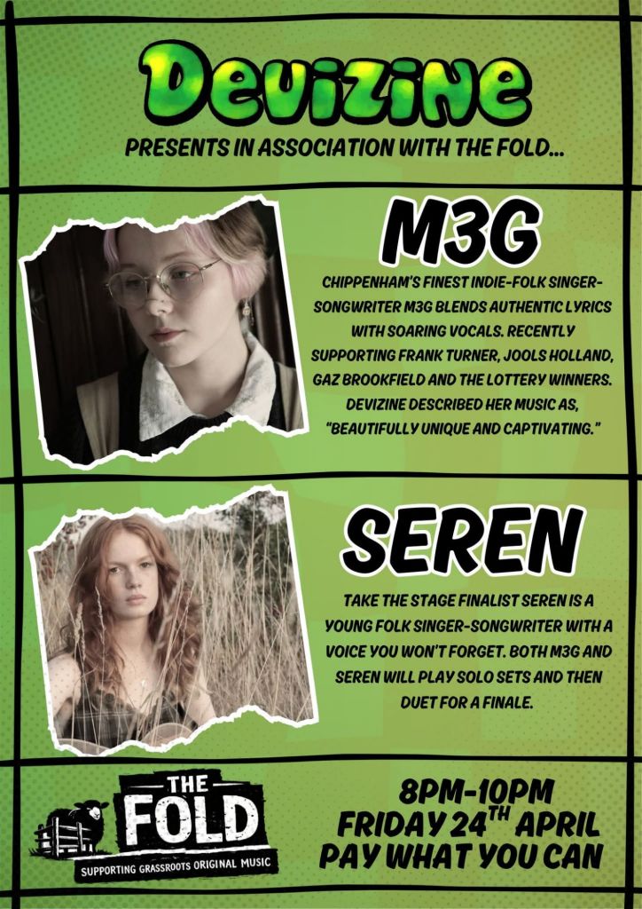 M3G’s style is uniquely wonderful and personal, something I advise you really need to see for yourself; here’s your chance. I also introduce you to Take the Stage finalist Seren, a Warminster based young folk singer-songwriter with a voice you won’t forget.