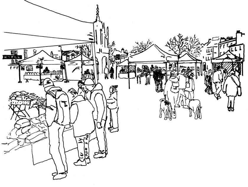 Every decade within living memory is represented on the town’s pavements, and anyone and everyone that isn’t housebound is unconsciously participating in a market day pageant. From prams and pushchairs to rollator walkers, wheelchairs and mobility scooters; these enabling wheeled wonders of our age are everywhere to be witnessed, as are many a responsible human with their pet dog on a lead.