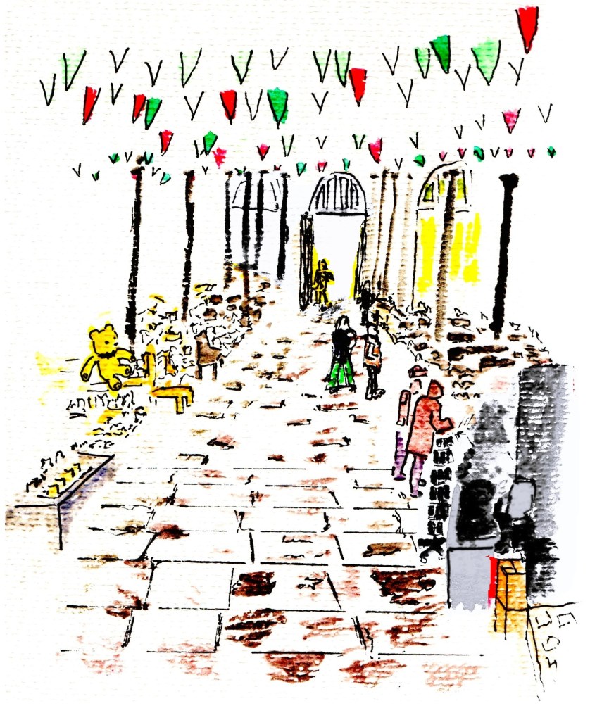 If you are familiar with the sights, sounds and smells of a market day mooch, then you may no longer notice the familiar market day hubbub: a soundtrack punctuated by the calls, banter and chats with market traders. You may not give a second thought to the welcome and directions you offered a newbie visitor. You will though notice the music, dance and drama brought by street entertainers, and the art that may be encountered in many forms from the stalls to the windows and interiors of independent shops.