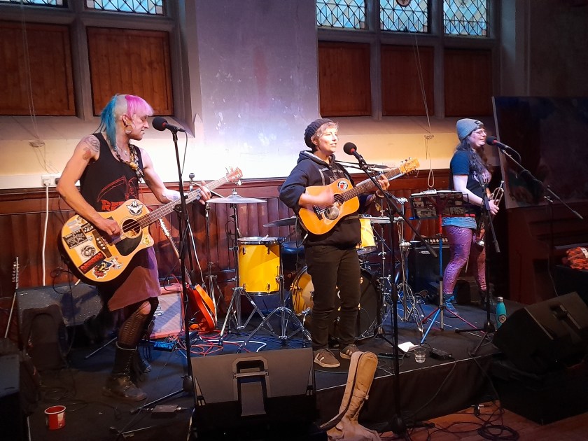 This tavern was bustling yet functioning happily, a crowd immersed in Meg’s magical words, set the stage for Americana soloist Jol Rose, up next. Something of a Swindon optimistic Dylan, he retains his concentrated narrative songs in favour of the more lighthearted ditties and banter to appease, though there was a poignant one on the Gaza conflict, but whichever his outlook, Jol is a proficient entertainer and skilled master of his craft.