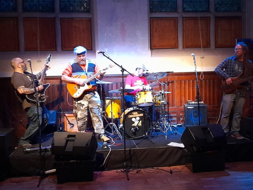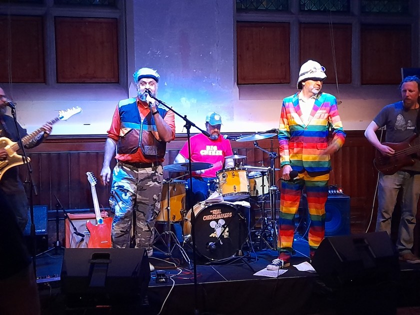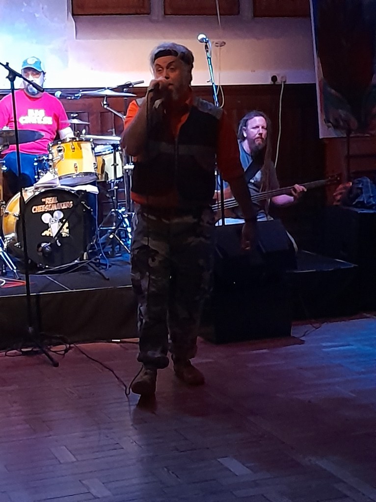 Unlike the Beehive, I was unfamiliar with the Castle, yet felt immediately at home; it had been invaded by both โTalkersโ awaiting the headliner, and cheesemakers from Calne, real ones! Itโs fine, off territory, no dispute, love The Real Cheesemakersโ hilarious wurzel take on heavy rock, and boy did they blast it superbly!