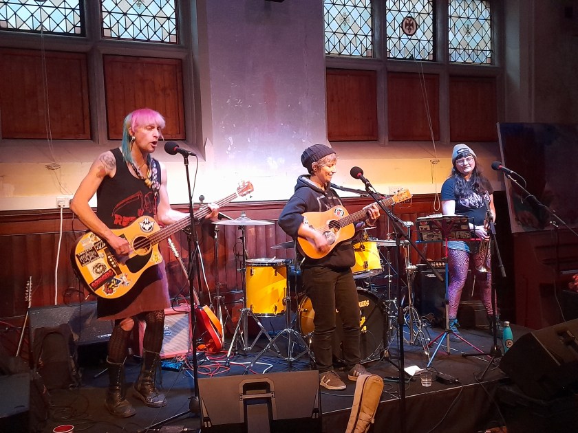 If Iโm complimenting Swindon, may as well include some infrastructure too, for tucked behind the now commercialised Regent Circus is the steep Prospect Hill, ingeniously with a pub at both the top and bottom. This would be my resting place for the duration, the short distance from the Beehive to the Castle manageable, if uphill, to switch between multi-musician Richard Wileman & singer and saxophonist Amy Fryโs gorgeous experimental jazz-come-psychedelia at the Beehive, and Liddington Hill whoโve created their own subgenre, Celtic-grunge, and were currently giving it whatโs for at The Castle. Allowing me to cross two must-sees off my list. Liddington Hill was brilliantly loud and in your face, everything Iโd imagined and more, and crowds gathered to salute that.