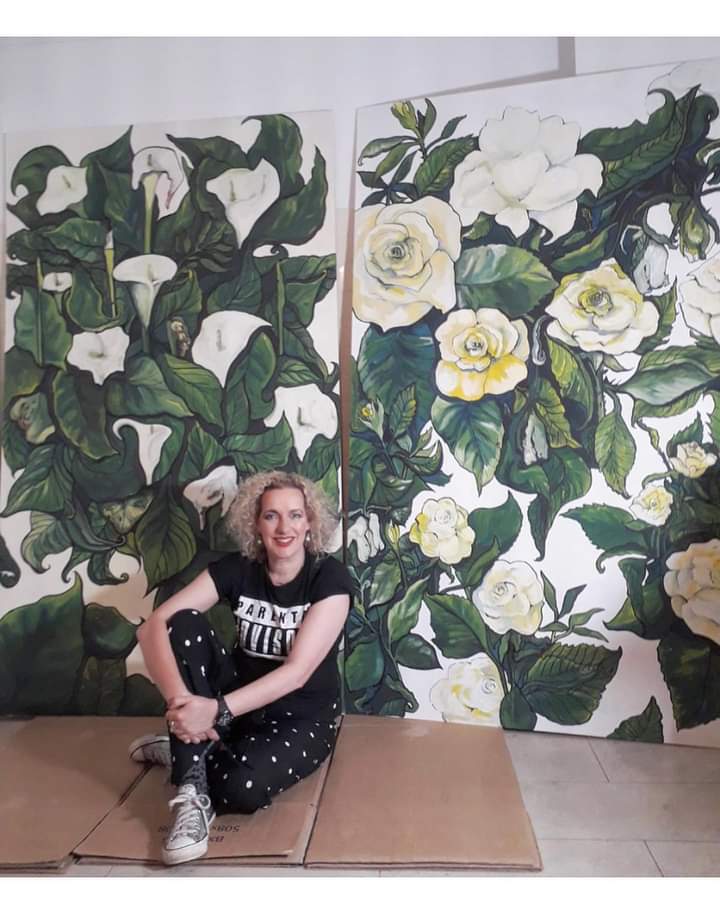 Swirls of psychedelia snake your eyes across them, akin to underground comix or yore, and in particular S. Clay Wilson. They can be themed darkly, with elements of cyberpunk, or lighter, fine art, impressionism is at play too. Yet there’s a nod to pop art, capturing humorous elements, wide-ranging themes from flowers to ice creams, and contemporary cultural icons, such as The Simpsons can be discovered on closer examination. Then, as you pan out, you begin to focus on a central point, the composition vortexes into a subject, often random, but themed to suit the surroundings. It is also a clear running concept to repeat the central subject atop the first, but slightly smaller in scale, and perhaps the topper most of one below, larger, like a play with a hall of mirrors.