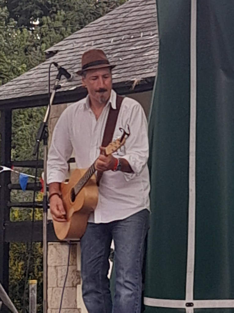 Anyhoo, rain didn’t rear its ugly mug, and under shaded skies of tolerable temperature, surrounded by deck chair city, sat the main attraction aside the beer tent, ah, some musical entertainment; twist my arm why don’t you?! Atop transport company Garrbutts’ trailer the stage was set for a host of locally-sourced acts. Devizes CAMRA made a wise move to bring in local music aficionados, Ben and his partner Victoria to arrange the entertainment. Being their first time coordinating they knocked it out of the park, or at least, the wharf!